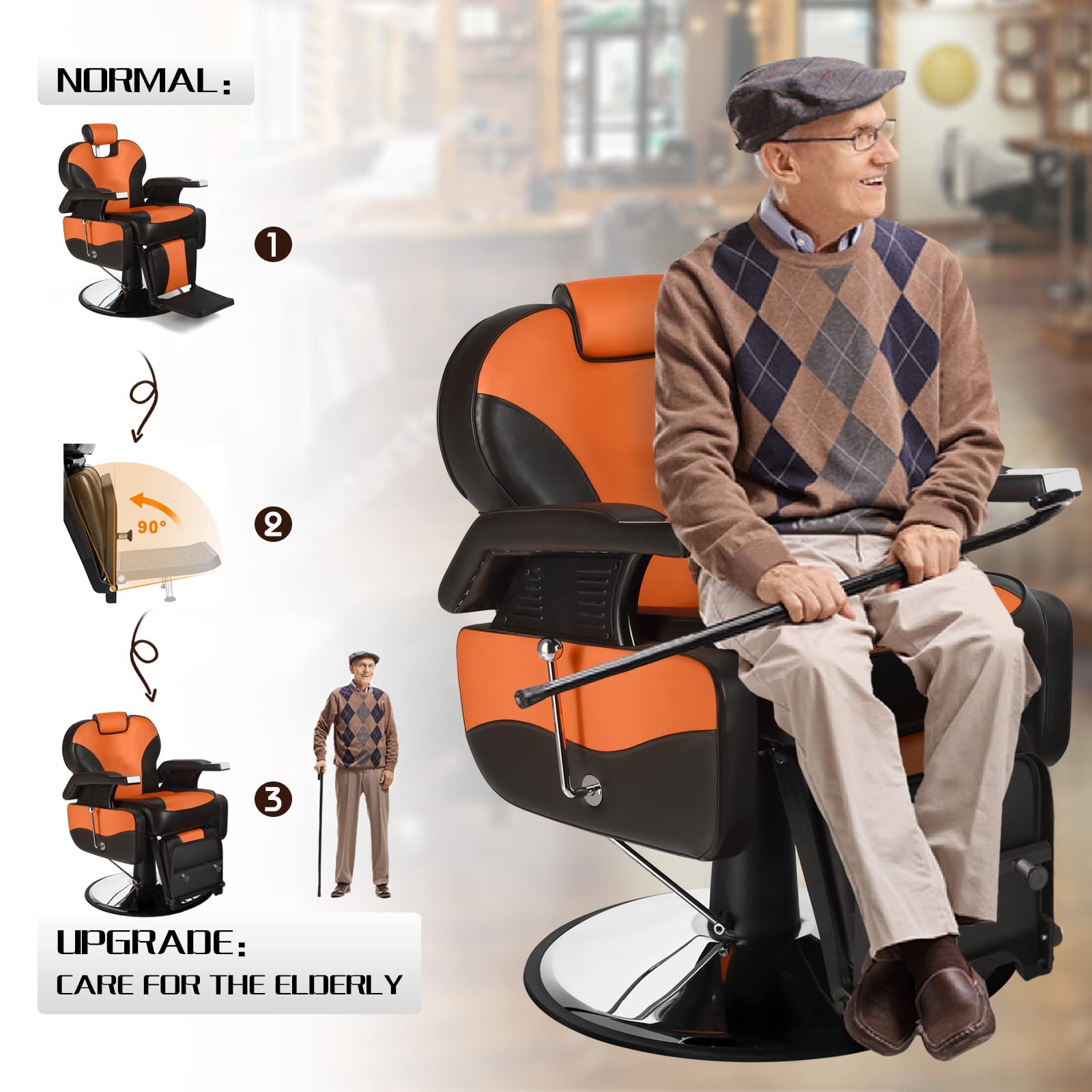 Amazon Com Artist Hand Barber Chair Hydraulic Reclining Barber Chairs Heavy Duty Salon Chair For Hair Stylist Tattoo Chair Salon Equipment Orange Brown Beauty Personal Care